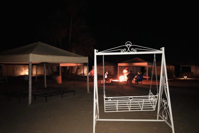 La jornada finalizará con cena y alojamiento en haimas, incluyendo un espectáculo de música bereber en directo junto a la hoguera, creando una noche inolvidable bajo las estrellas.