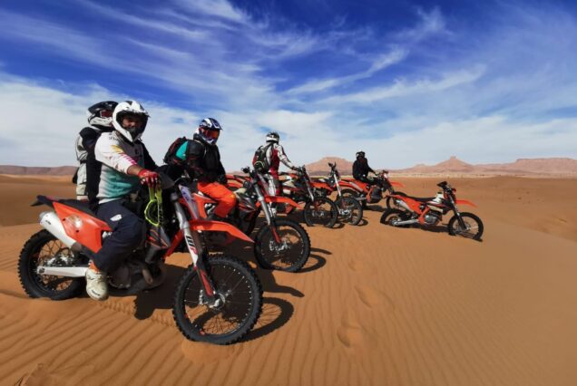 Organizamos rutas y viajes en moto KTM de enduro con salidas desde las principales ciudades de Marruecos, como Marrakech, Fez, Rabat, Casablanca, Tánger, Tetuán, Nador, Oujda, Beni Mellal, Errachidia, Midelt, Erfoud, Merzouga, Zagora, Ouarzazate o Agadir, lo que nos permite crear itinerarios flexibles y totalmente personalizados.