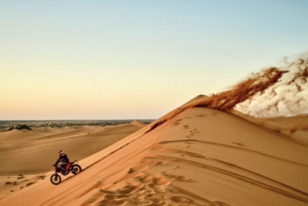 Travesías tipo Rally Dakar por dunas y pistas rápidas en en moto KTM de enduro.