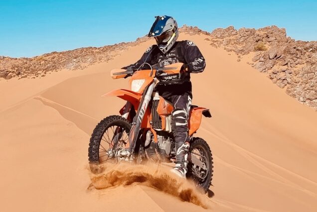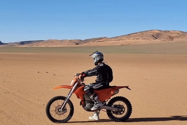 Excursión y Tour en Moto KTM de Enduro en Zagora y Erg Chegaga: grandes pistas rápidas, zonas desérticas abiertas y espíritu Rally Dakar.
