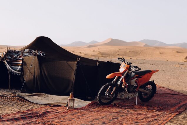 Alquiler de moto KTM de enduro preparada para desierto y montaña en Marruecos.