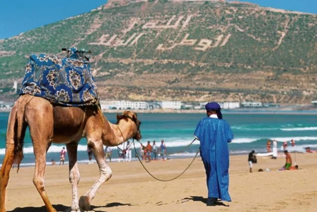 Nos despertaremos temprano antes del amanecer para contemplar la salida del sol en la duna detrás del campamento, iremos a desayunar y después regresaremos en 4×4 o en camellos hasta el hotel para regresar de la excursión de 3 días y 2 noches a Agadir. Pasaremos por Rissani, una de las ciudades más antiguas de Marruecos (la dinastía alaouite y la capital de los antiguos sultanes Alaouite), allí haremos una parada a la salida del pueblo para hacer la foto de la puerta del desierto, y atravesaremos los áridos y al mismo tiempo interesantes paisajes pre-desérticos hasta llegar al Valle del Draa, donde realizaremos una parada para disfrutar de este precioso valle que discurre junto al río que lleva el mismo nombre. Es el río más largo de Marruecos y cruza todo el país hasta Mauritania y la otra parte llega hasta la playa blanca. Cruzáremos las montañas del Anti Atlas hasta llegar al pueblo de Tazenakht, que tiene alrededor de 7280 habitantes y una altitud de 1405 metros, este pueblo es famoso por su artesanía de alfombras bereberes de las montañas, allí es donde tomamos el almuerzo en un restaurante típico del pueblo (carne a la brasa). Por la tarde seguiremos atravesando las montañas del Anti Atlas hasta llegar a Agadir, os dejamos hasta dónde puede llegar con el coche lo más cercano de vuestro alojamiento y fin de nuestro servicio de la excursión de 3 días y 2 noches desde Agadir al Desierto de Merzouga Sahara (Erg Chebbi) Marruecos, esperemos que hayáis  disfrutado con nosotros y muchas gracias por vuestra experiencia con nuestro equipo.