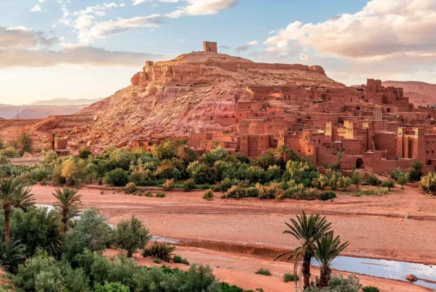 Recorreremos después la ruta de las mil Kasbahs (Skoura) que es la ruta de entrada hasta la salida del pueblo de Skoura, seguiremos el viaje hacia Ouarzazate (la ciudad de cine) donde pasaremos la noche en Hotel
