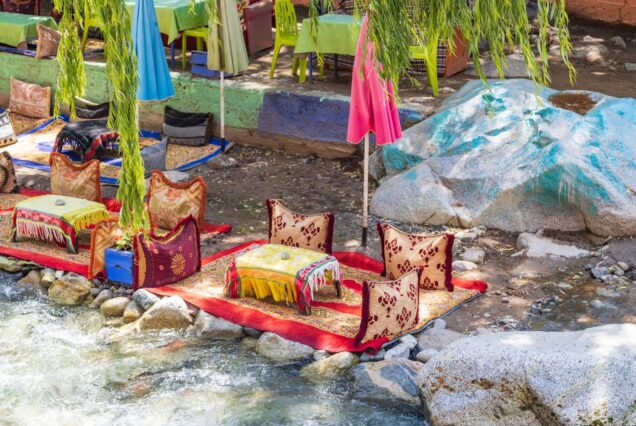Nuestra primera parada será en el Valle de Ourika, donde dispondréis de tiempo libre para explorar sus rincones, degustar la gastronomía local en restaurantes tradicionales o realizar una caminata de 1 a 2 horas hasta la famosa cascada de Setti Fatma.