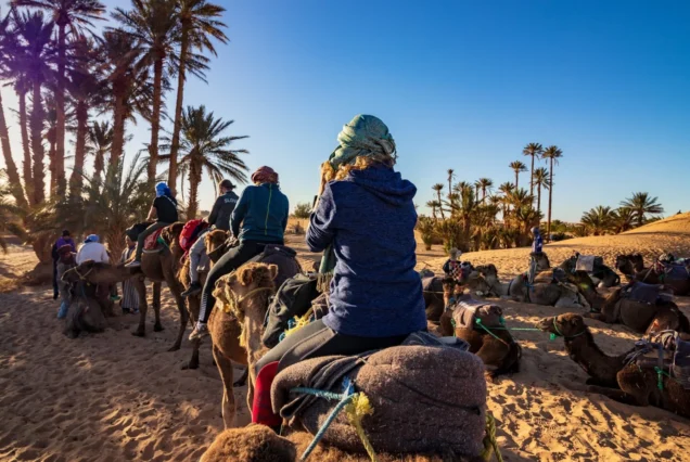 • Excursión en camellos (cada uno con su camello) para ir a pasar la noche en haimas y volver el día siguiente (hay opción de volver en camellos o en 4×4)