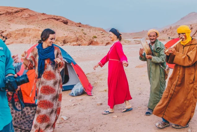 Nos despertaremos para desayunar y después salida a las 08h00 desde el Hotel hacia Marrakech, de la excursión de 10 días y 9 noches, Desde donde seguiremos hasta Rissani donde paramos en la salida de la ciudad para hacer la foto de la puerta del desierto, de allí seguimos nuestro camino hacia Erfoud, donde pararemos en una cooperativa de Fósiles (mármoles) si os interesa. Pasamos después por varios pueblos Árabes y Bereberes como Jerf y Touroug… en Melaab podemos parar en una tienda de mujeres para hacer unas fotos con la ropa típica Bereber. Allí también podéis comprar cualquier recuerdo o regalo si os interesa, y también allí ofrecen un tatuaje de henna, pero si no compréis nada hay que darles una propina mínima de 5€. Por la tarde llegaremos al precioso valle del Tinghir donde haremos varias paradas para ver la panorámica y las maravillosas Gargantas del Todra, las cuales visitaremos ,con sus espectaculares paredes en vertical, que se van estrechando a cada paso, allí dais un paseo por en medio de las gargantas, os dejamos a la entrada y recogida seria a la salida de las gargantas y después seguimos hacia el pueblo de Boumalne Dades, de allí iremos por el valle hasta llegar al hotel donde pasaremos la noche.