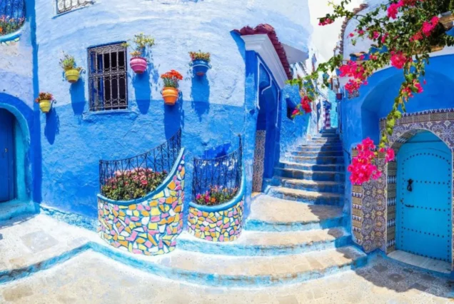 A vuestra llegada a Tánger os espera vuestro chofer/guía, salida hacia Chaouen, que son unos 2h30 de camino, después llegamos al pueblo azul de Chefchaouen (significa “los cuernos” por los picos montañosos que se ven desde el pueblo, también se conoce como Chaouen o Xauen), traslado a vuestro alojamiento y tiempo libre para disfrutar de este pueblo con sus calles azules y su paz y tranquilidad, es una ciudad pequeña con unos 40.000 habitantes y para cenar podéis hacerlo por los restaurantes en la plaza Outa-el-Hammam.