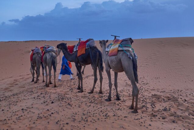 • Excursión en camellos para ir a dormir a las Haimas y volver al amanecer después del desayuno (hay opción de volver en camellos o en 4×4)